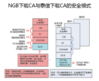 泰信开发的下载CA技术架构与总局颁布的NGB下载CA总体技术架构一致,二者的比较框图如下: